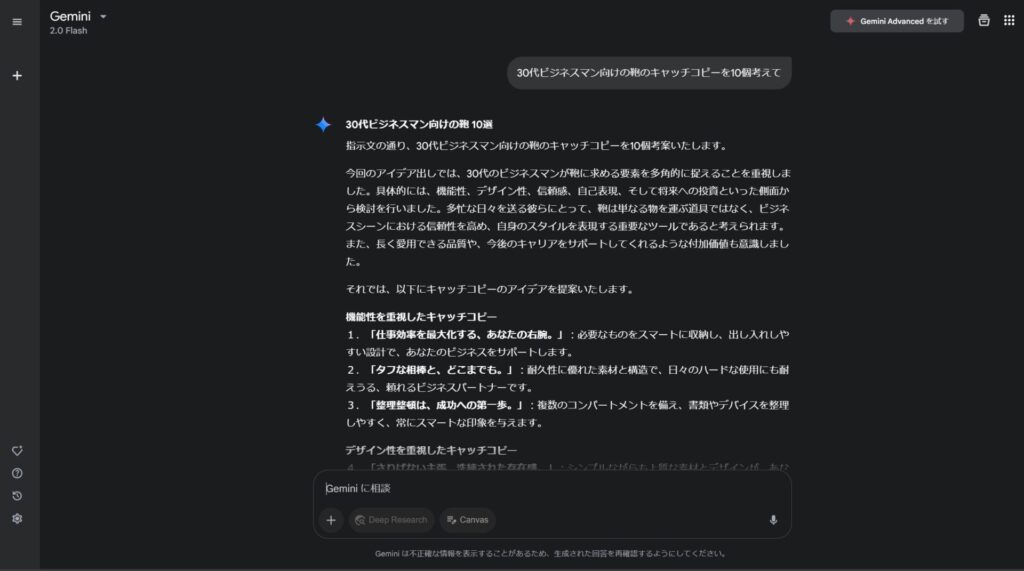 GeminiはAIツールに使い慣れていない方でも、直感的に使用することができます。