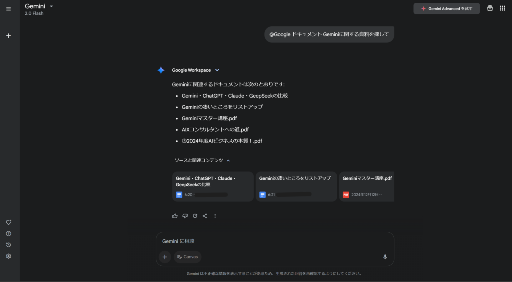 つまり、Geminiは参考情報としては非常に優秀ですが、「大事な情報は必ず人が最終チェックする」ことが必要ということです。
