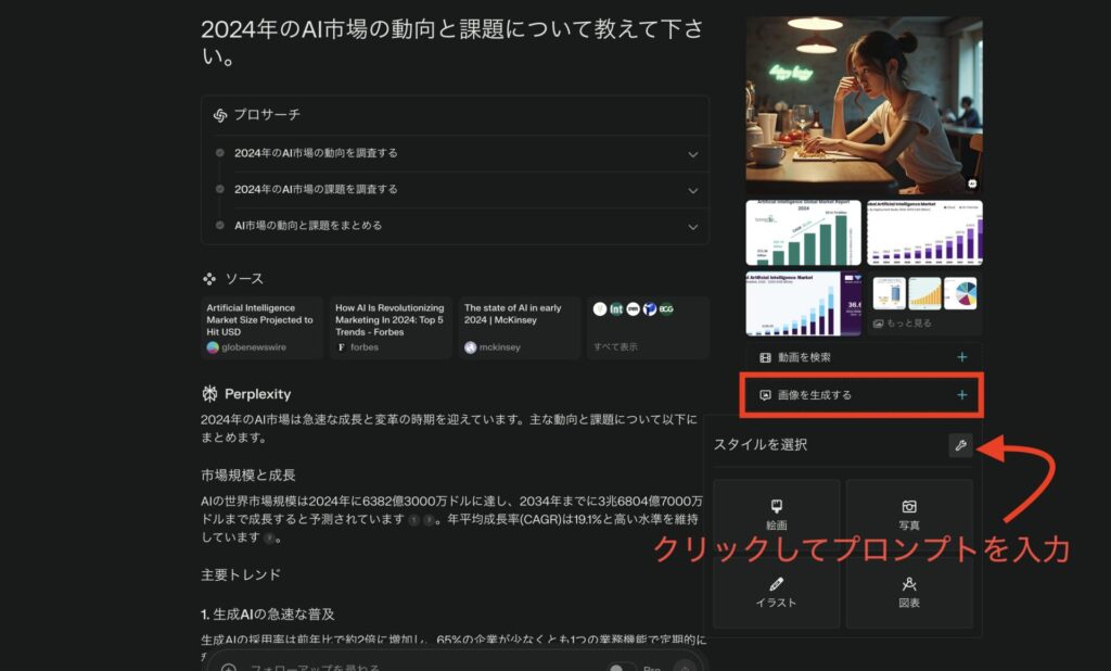 「2024年のAI市場の動向と課題」というテーマを無料版で検索してみました。