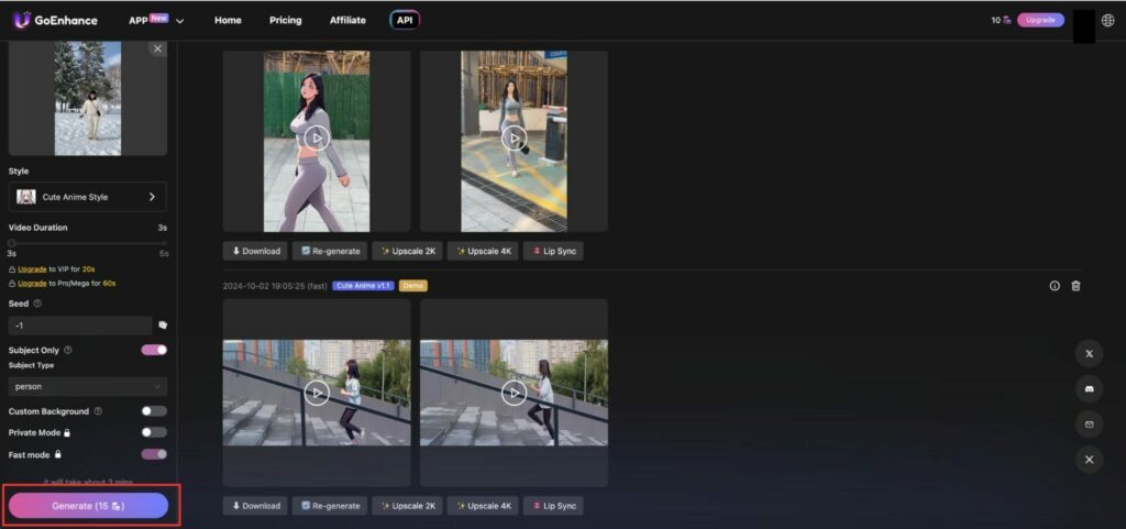 GoEnhance AIで、実際にアニメ風動画を作ってみた