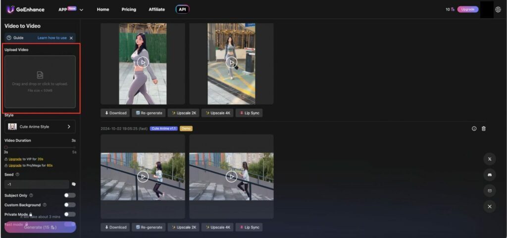 【初心者でも簡単】GoEnhance AIでアニメ風動画を生成する方法