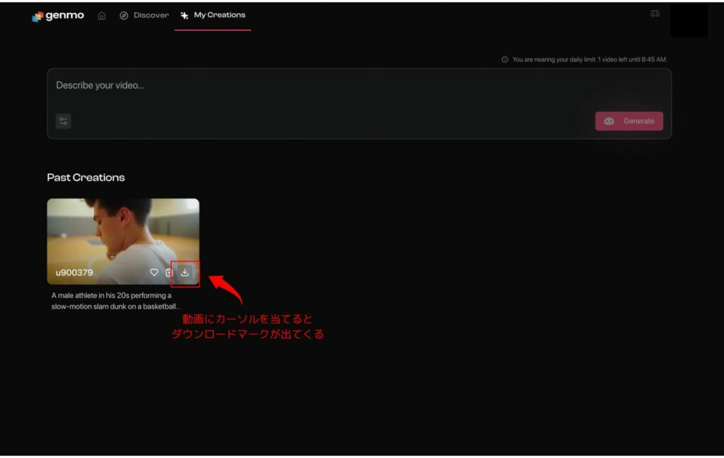 「My Creations」ページに移動すると、生成された動画が表示されます。