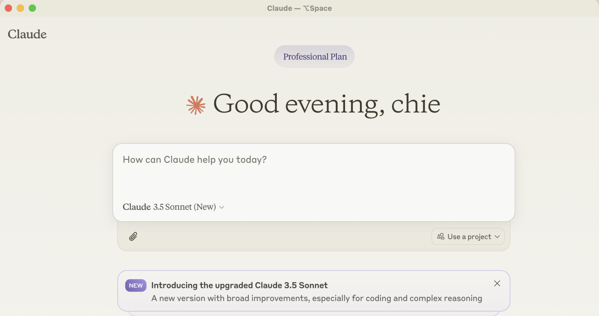 Claudeのデスクトップアプリは、Web版と同じように高度な自然言語処理能力を持つ最新の「Claude 3.5 Sonnet」モデルを搭載している点が特徴です。