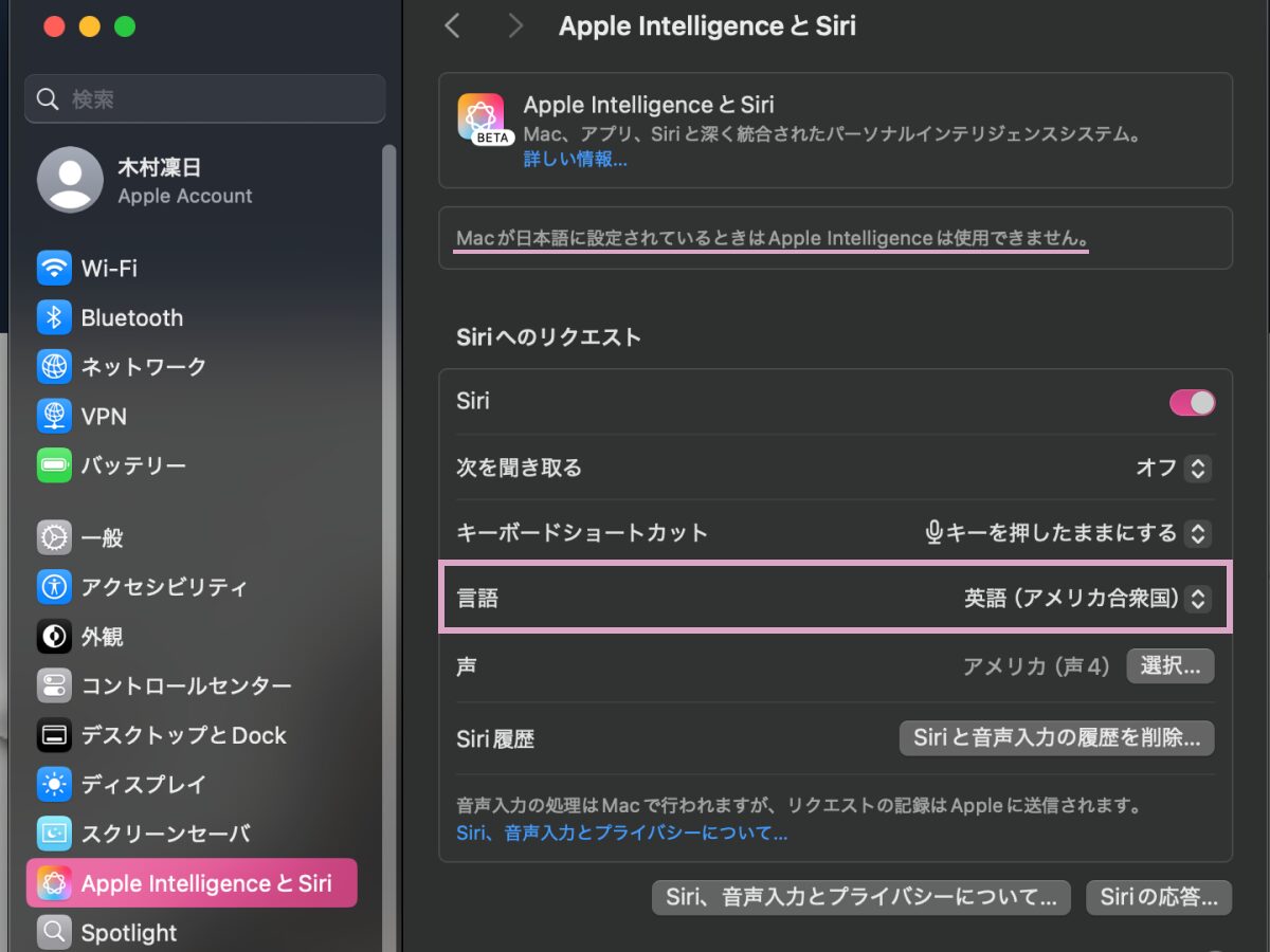 各種設定画面の表示が英語になりますが、「Apple Intelligenceをさっそく使ってみたい!」という方はぜひ利用してみてください。