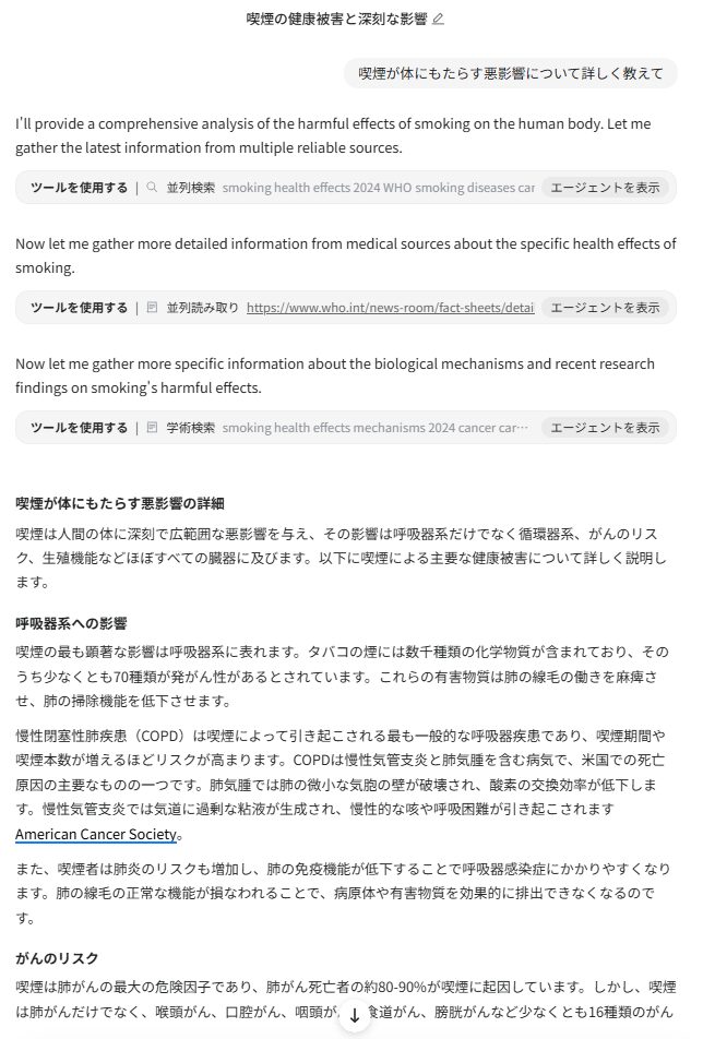 とくに医療や技術分野では、レビュー論文に匹敵するような深い情報を即座に生成できます。