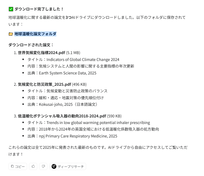 上記のように、資料の詳細や出典元を提示してくれます。資料もPDFでダウンロードしてくれました。必要な素材を効率よく集めたいときに、ぜひ活用してみてください。