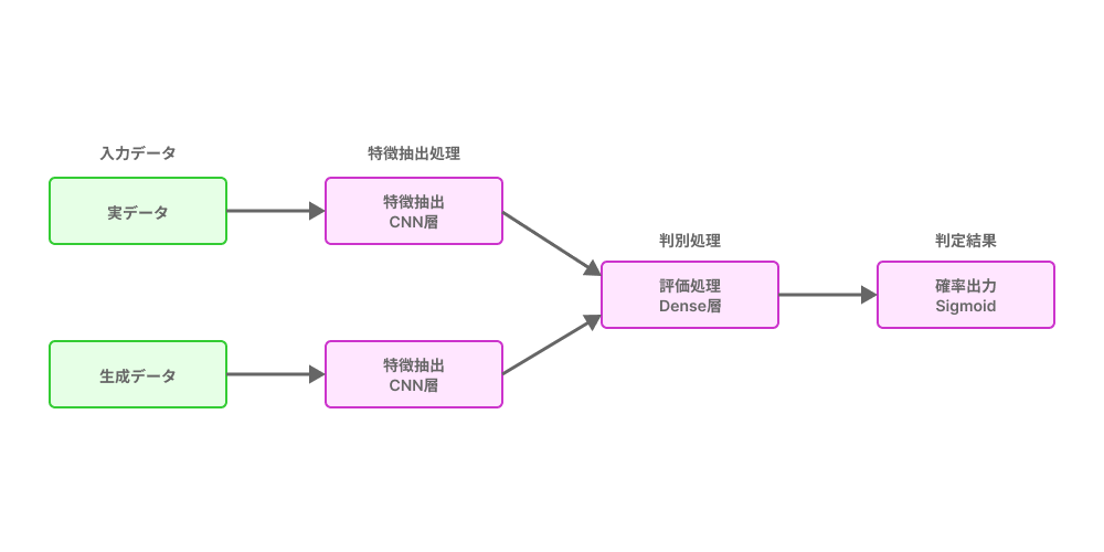 Discriminatorは、本物の画像とGeneratorが作った偽物の画像を見分けるAIです。