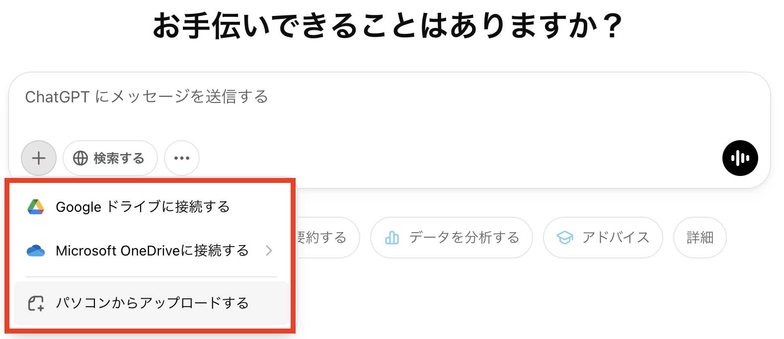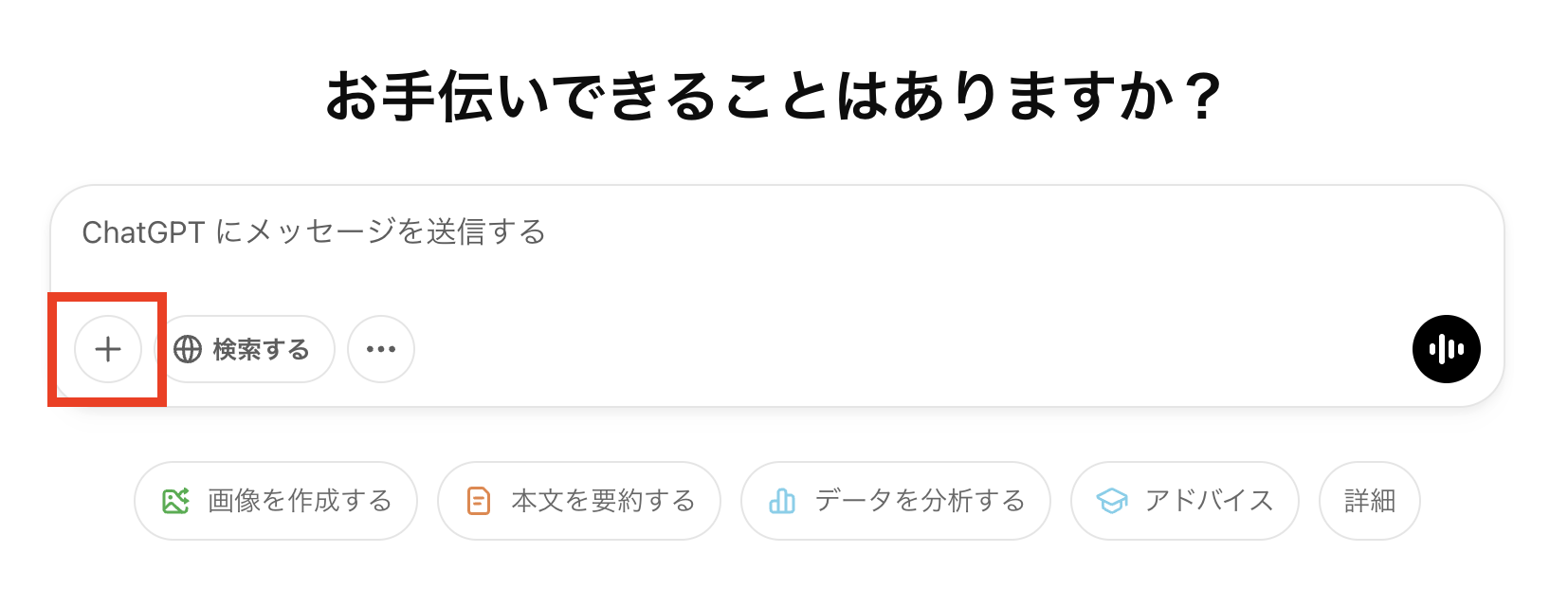 ChatGPTを開き、最初の画面にあるプラスボタンを押します。