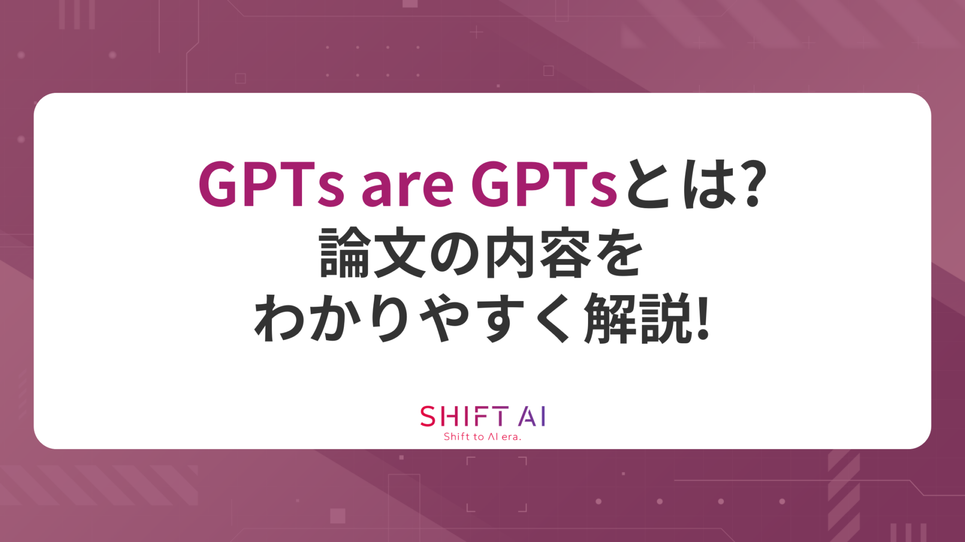 論文は全文英語で書かれているため、AIに関心があってここにたどり着いた方の中には、「GPTs are GPTsってどういう意味?」「論文の内容は?」と気になっている方も多いでしょう。