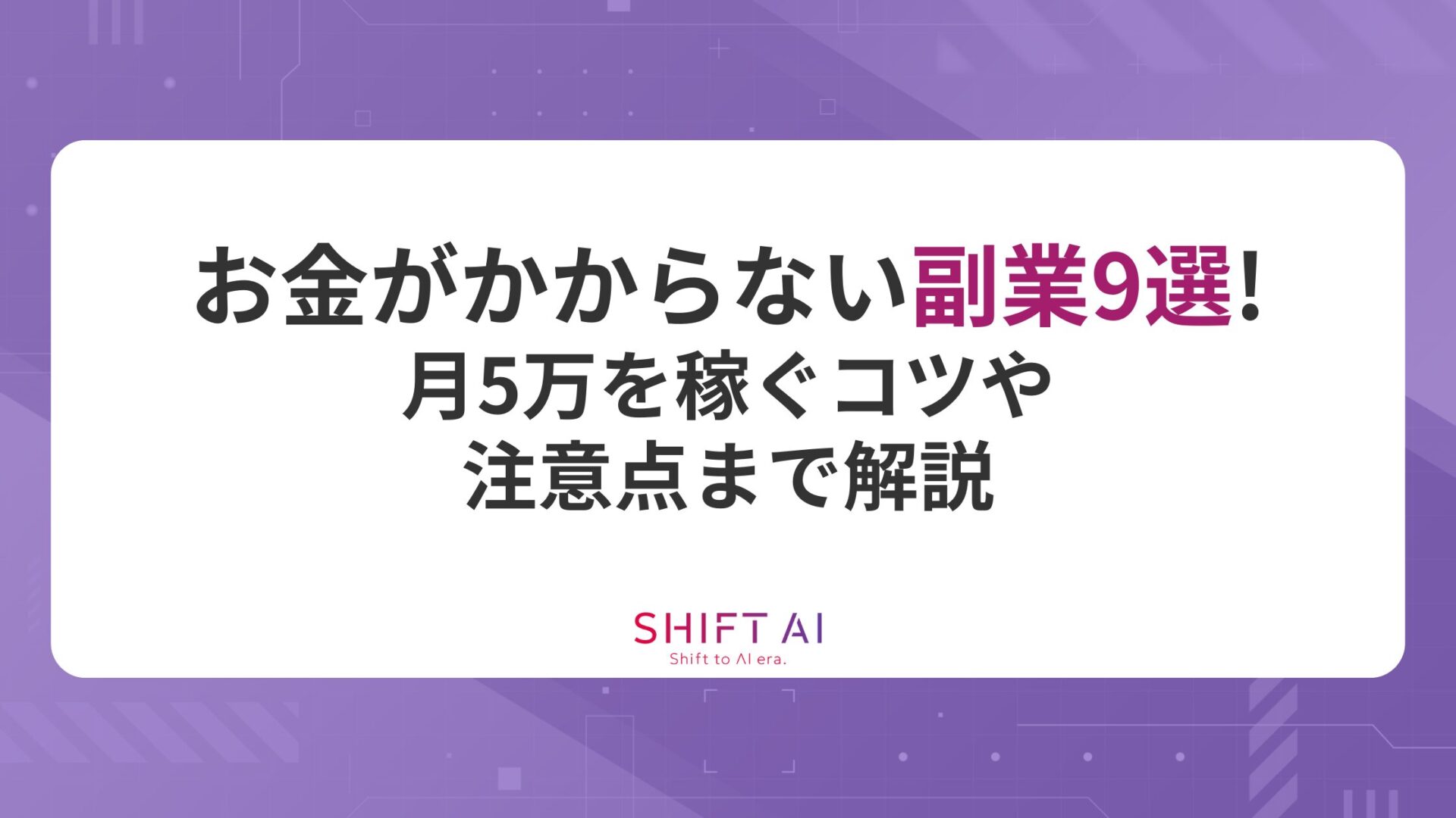 本記事では、初期費用の捻出に悩む方でも始められる9つの副業と、月5万円を稼ぐためのコツについて解説します。