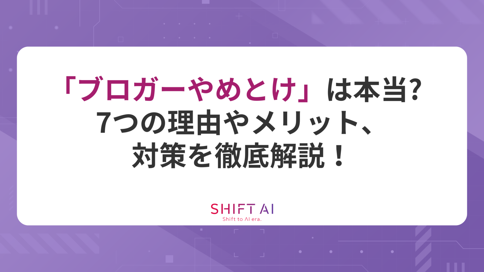 ブロガーのメリットや、「やめとけ」といわれた時の対策にも触れるので、ブロガーに関心のある方はぜひ最後まで読み進めてください。