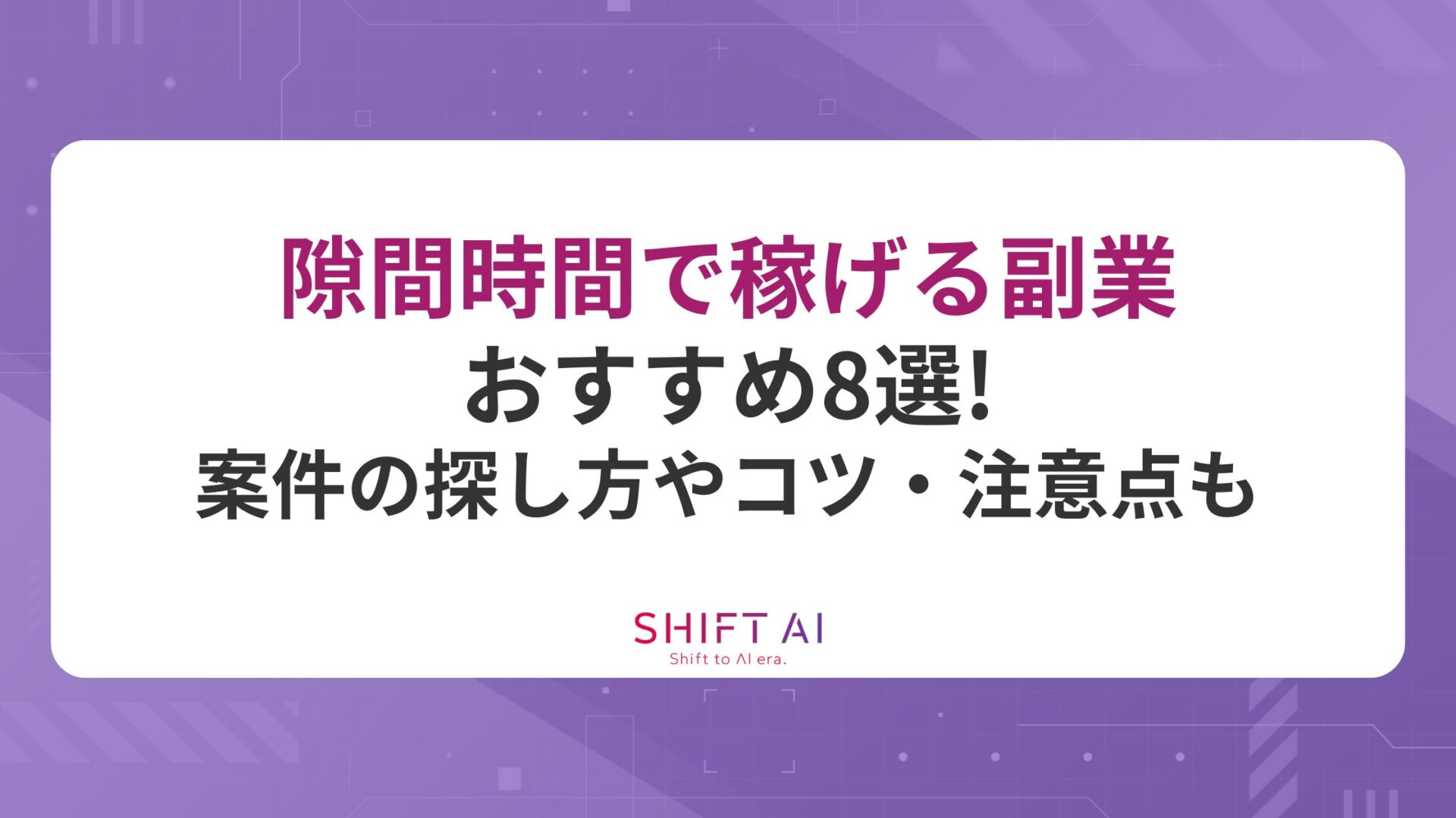 さらに、安全な求人・案件の見つけ方や、隙間時間での副業のコツ・注意点についても解説していきます。