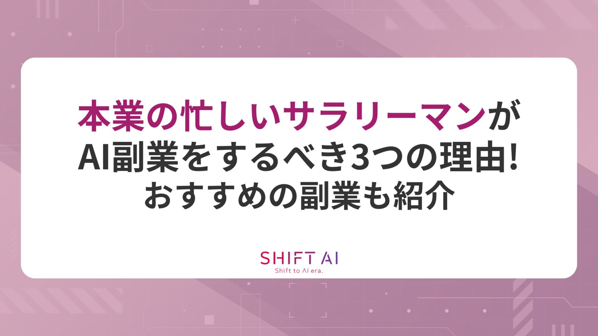本業の忙しいサラリーマンがAI副業をするべき3つの理由!おすすめの副業も紹介