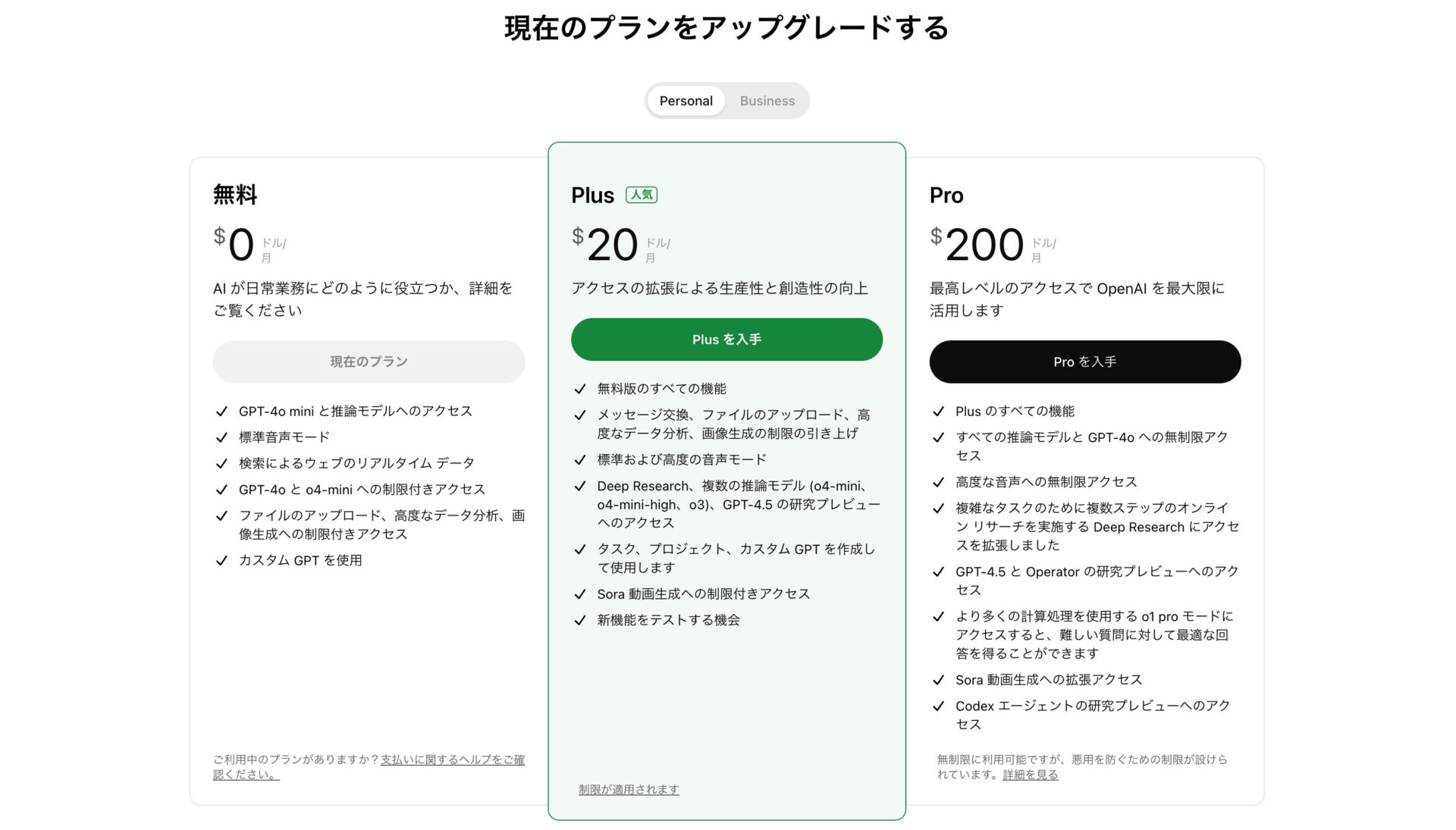 それでも、いち早く新しいモデルや追加機能を体験したい場合には、Plusプランのほうが有利となるケースがあります。