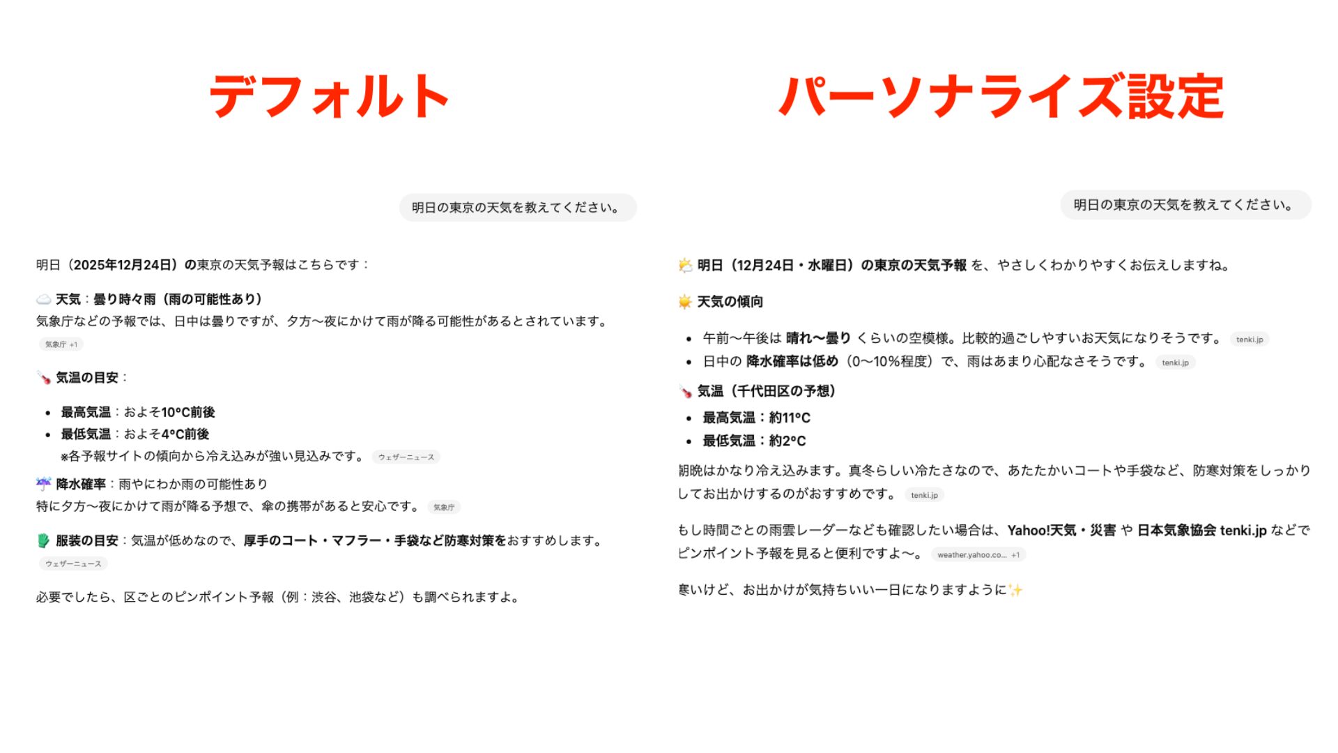 以下は、同じ質問を「役割を与えた場合」と「役割を与えなかった場合」の出力比較です。