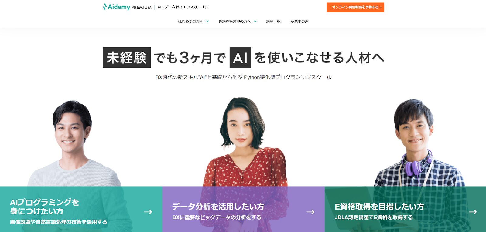 >Aidemy PREMIUMのオンラインスクールに関する詳しい情報はこちらから