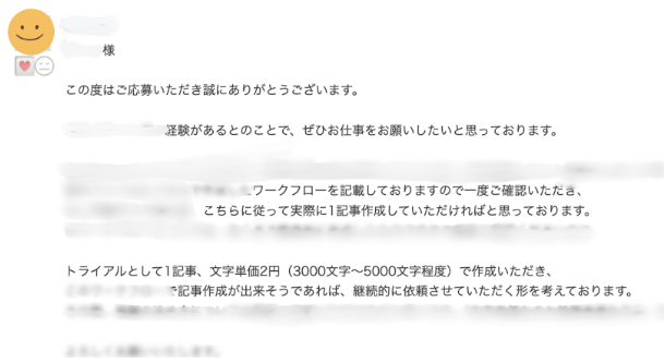 早速申し込んでこの日は終わりです。翌日には過去に低単価の案件をいくつかこなしてきた実績を評価され、受注が確定。仕事依頼に向けて手続きが進みます。