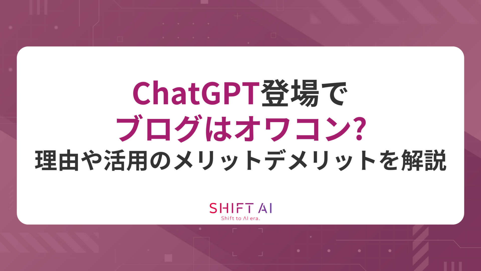 本記事では「ChatGPTでブログは本当にオワコンなのか?」といわれる5つの理由や、ChatGPT活用のメリット・デメリットを紹介します。