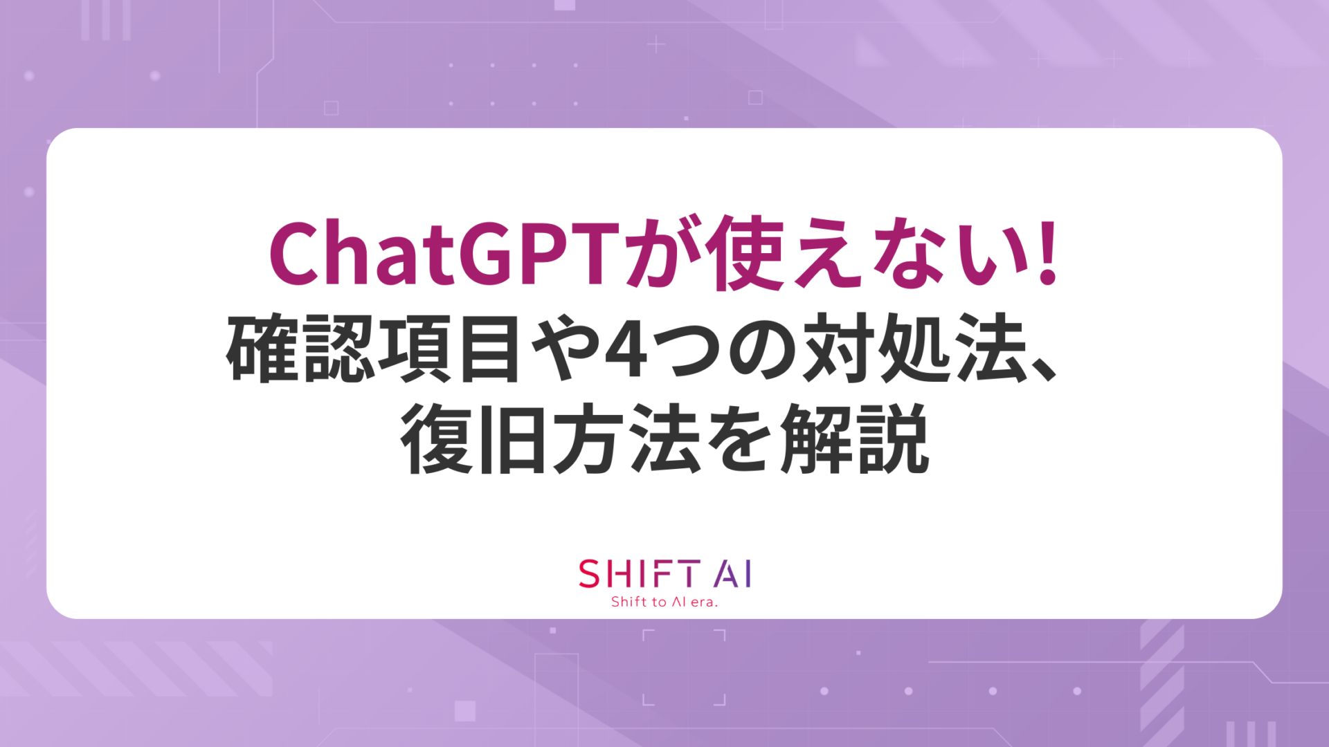 この記事の内容を参考にして、ChatGPTが使えない場面でも落ち着いて対応しましょう。