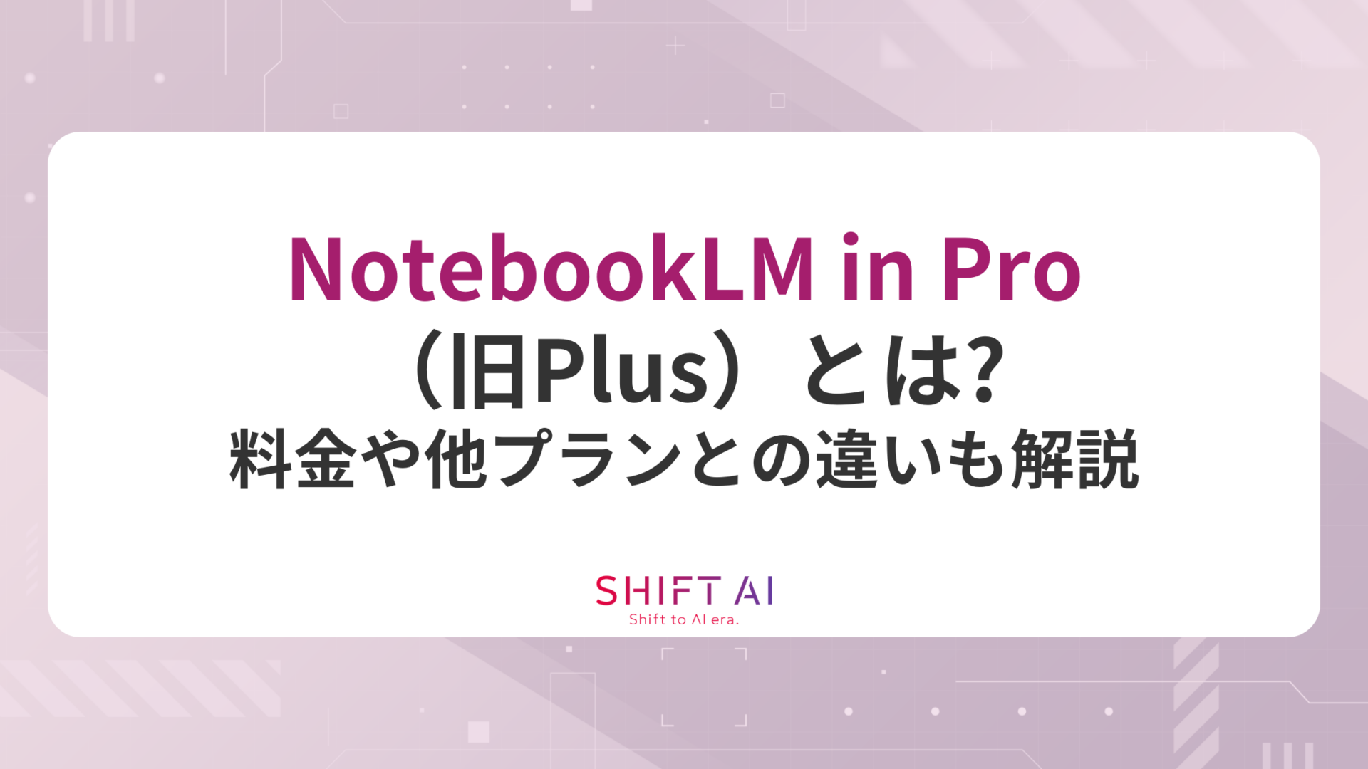 本記事では、NotebookLM in Pro(旧Plus)の特徴やメリット、他プランとの違い、料金や導入方法まで詳しく紹介します。