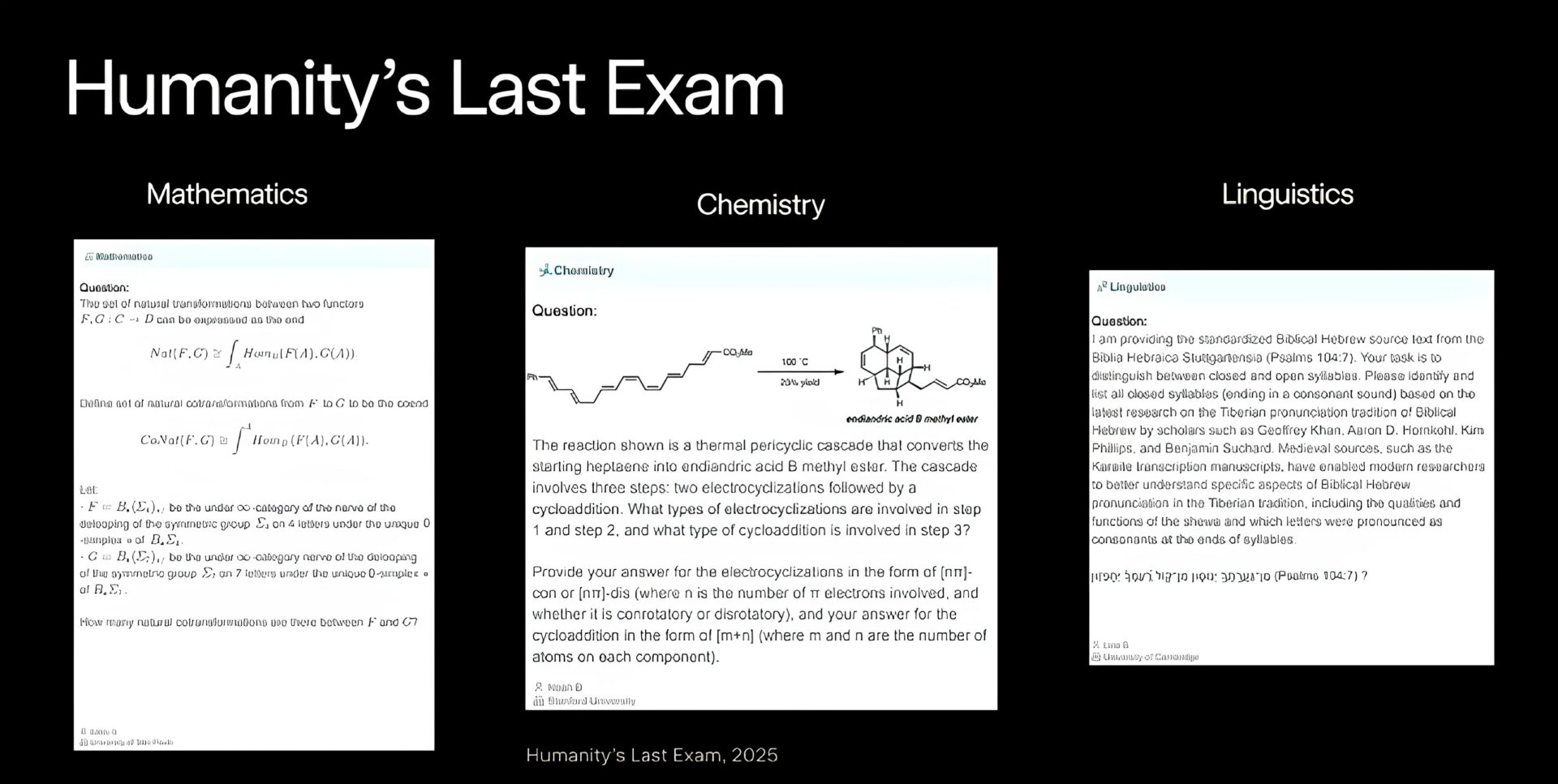 Humanity’s Last Examは、複雑な推論や専門知識が求められる問題で構成されており、生成AIの「真の思考能力」を測るものです。