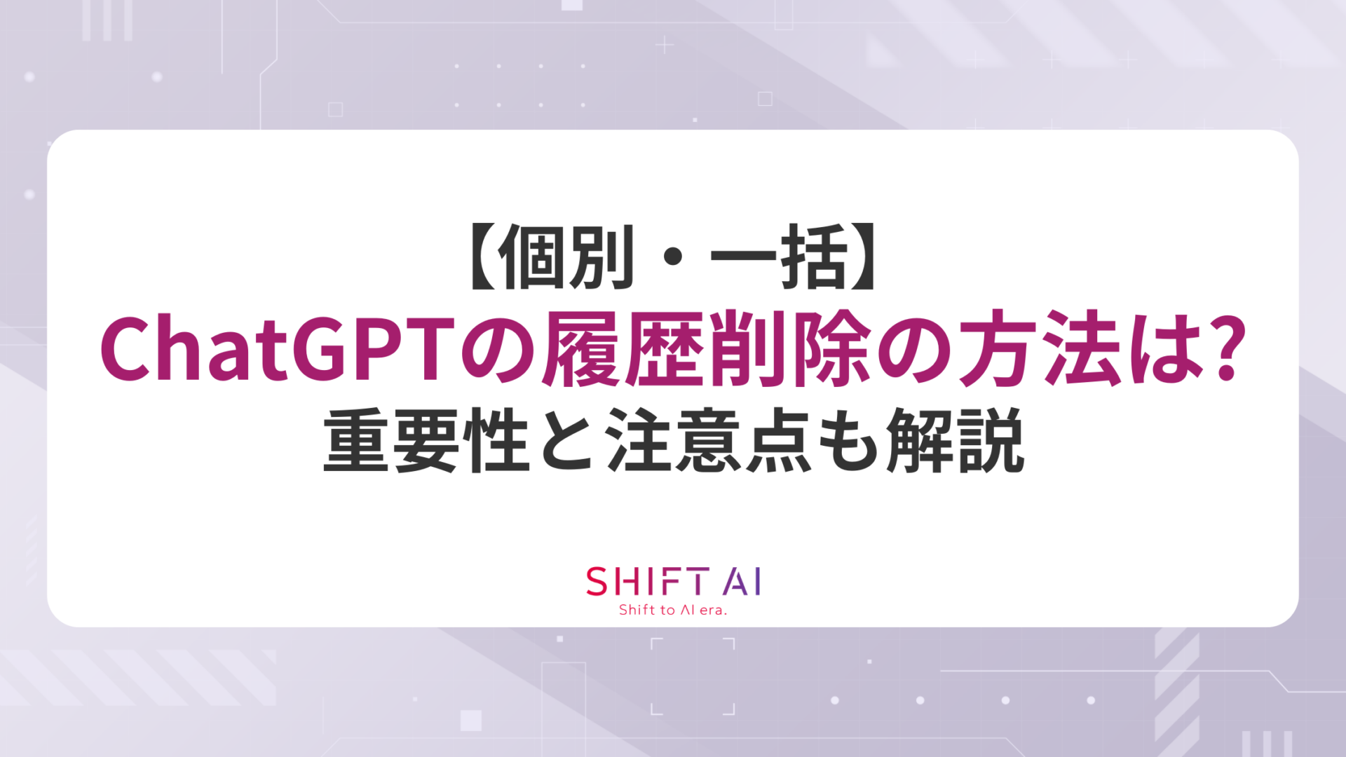 【個別・一括】ChatGPTの履歴削除の方法は?重要性と注意点も解説