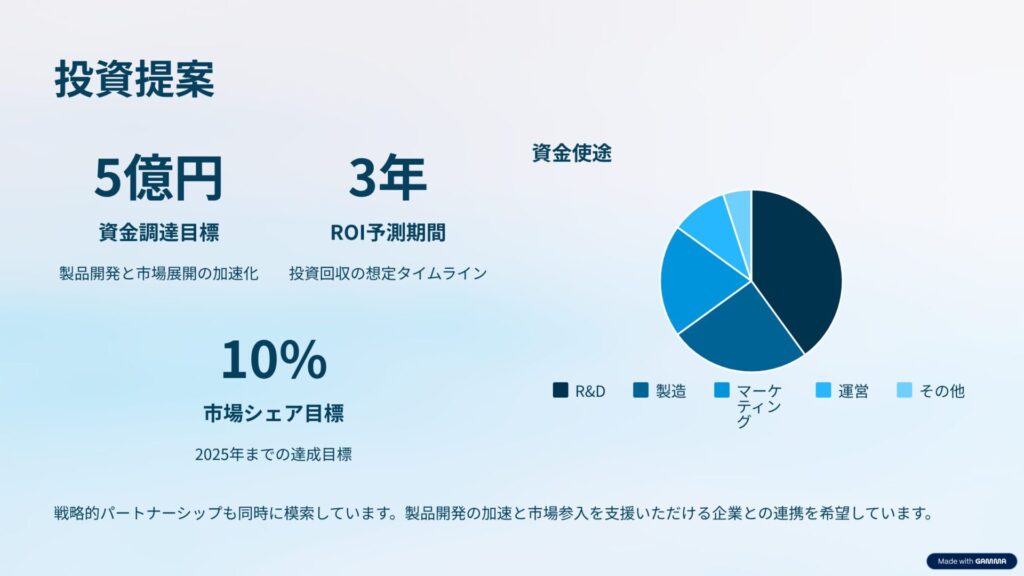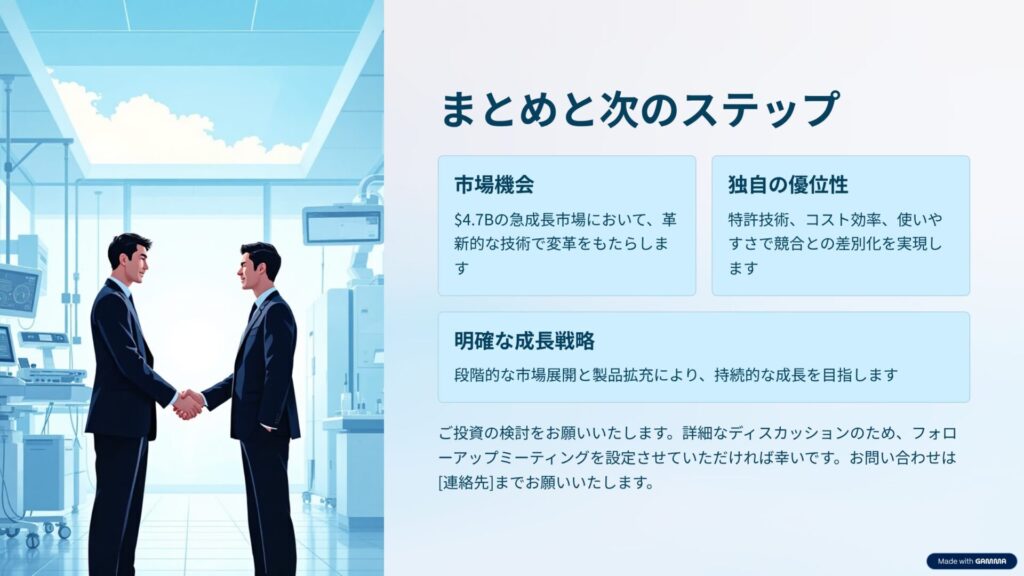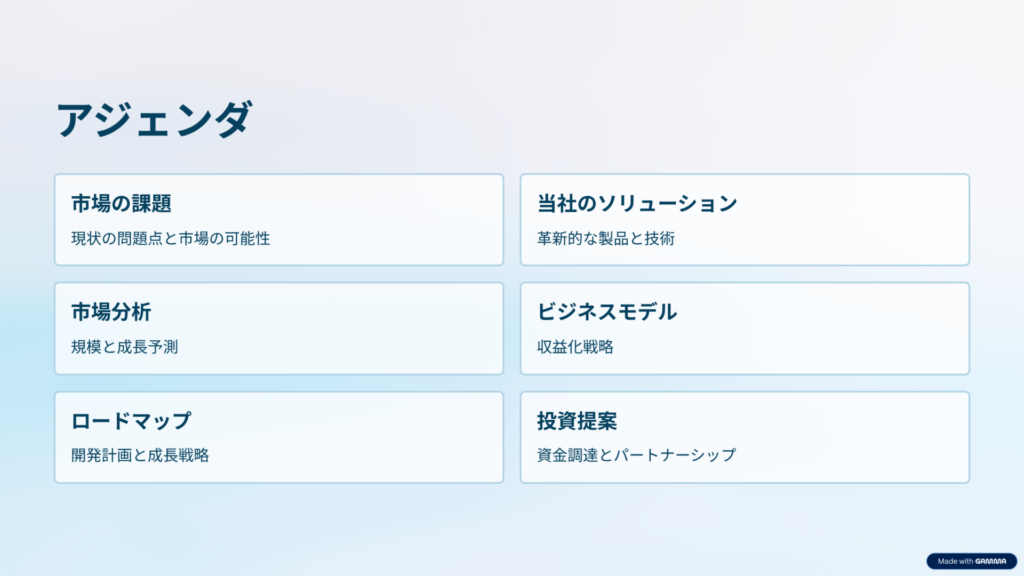 以下の例はGammaで資料化したものです。ぜひ参考にしてください。