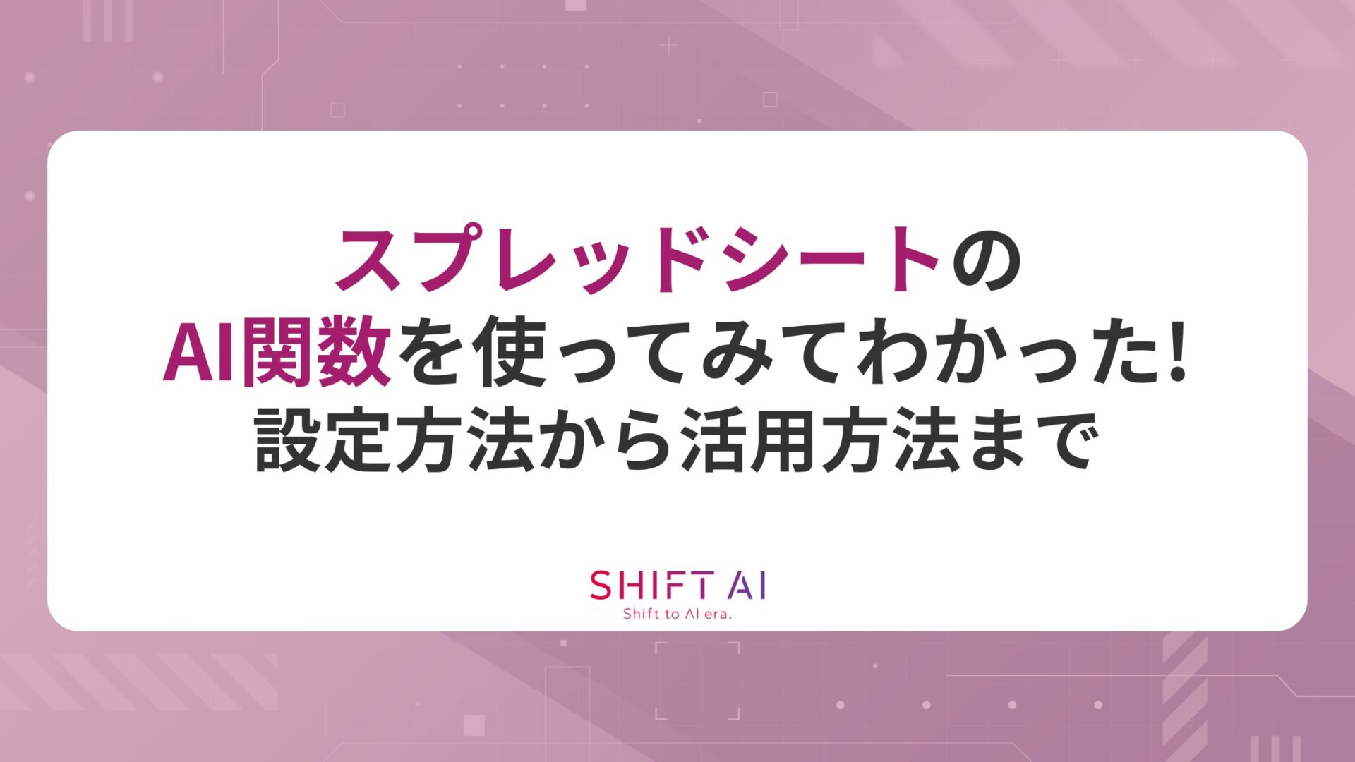 「SNSでスプレッドシートのAI関数について見かけるけれど、使い方がわからない」「AIを使った作業効率化に取り残されたくない」などの悩みを抱えていませんか。