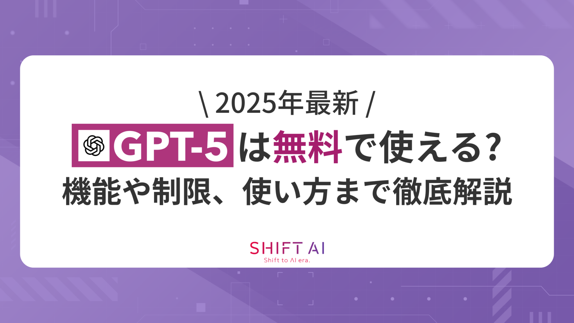 本記事では、GPT-5が無料で使えるのかどうかをはじめ、無料プランで使える機能や制限などを解説します。