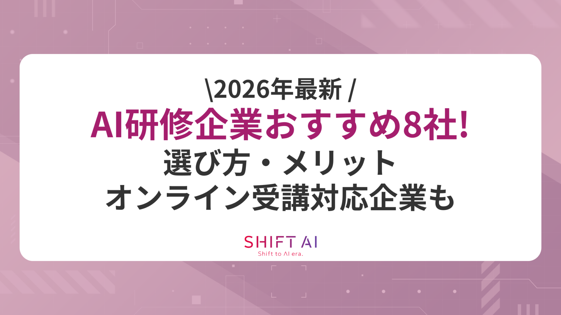 【2026年最新】AI研修企業おすすめ8社!選び方・メリット・オンライン受講対応企業も