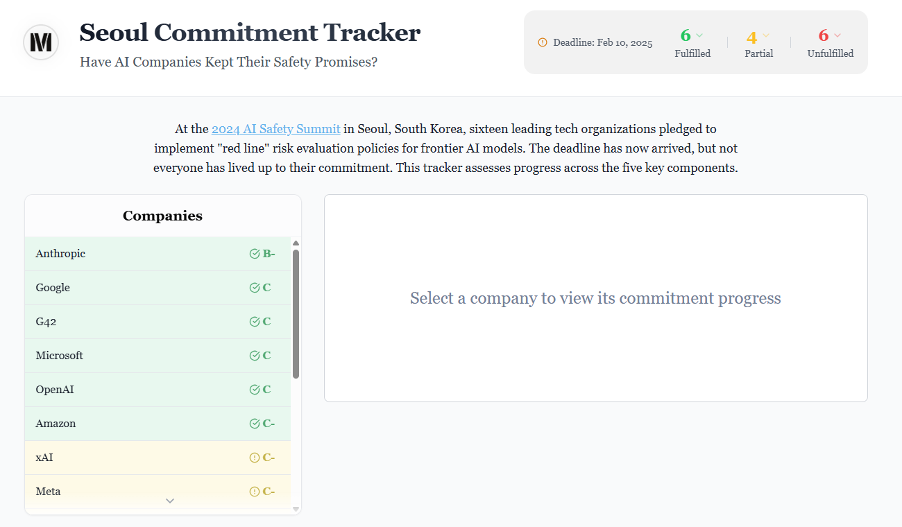 bioshok:いえ、十分とは言えません。大手開発企業のAIアライメントを評価する試みとして、Seoul Commitment Trackerというウェブサイトがあります。