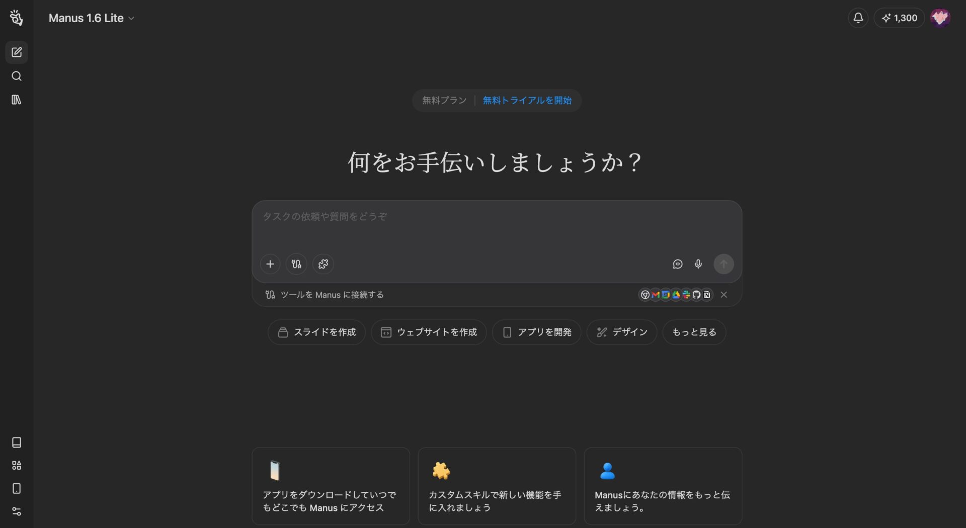 無料プランでも十分に実用的な性能があり、初めて生成AIを使う人でもすぐに使い始められます。