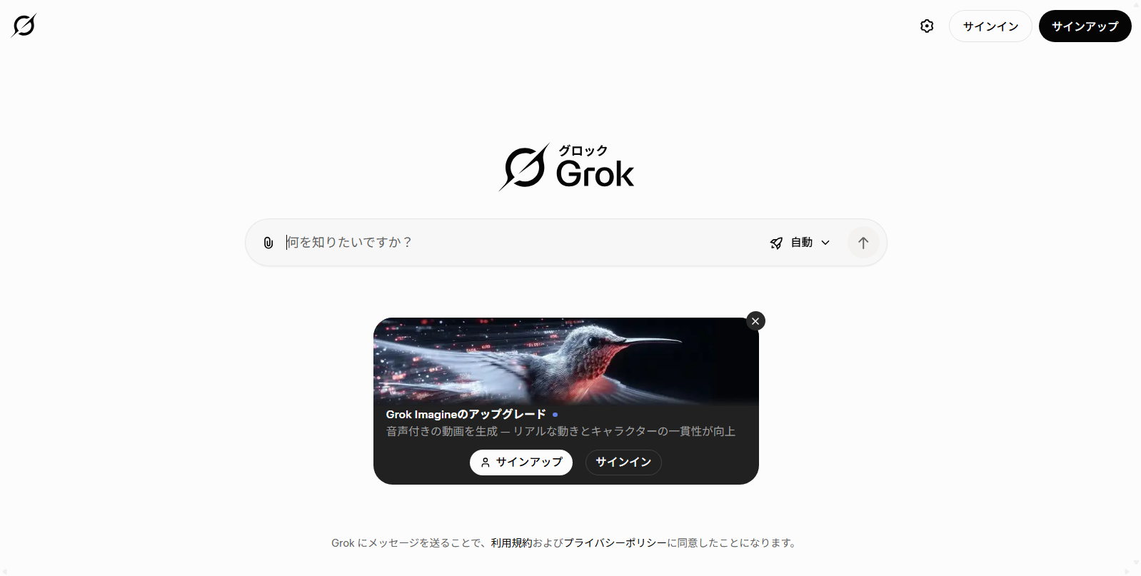 | Grok | ★★★★☆ | ・最新ニュースに強い ・トレンド把握が速い | 真面目用途に不向き | ・Free:無料 ・SuperGrok:$30/月 ・SuperGrok Heavy:$300/月 | トレンド調査 | SNS利用者 | 可 | |
