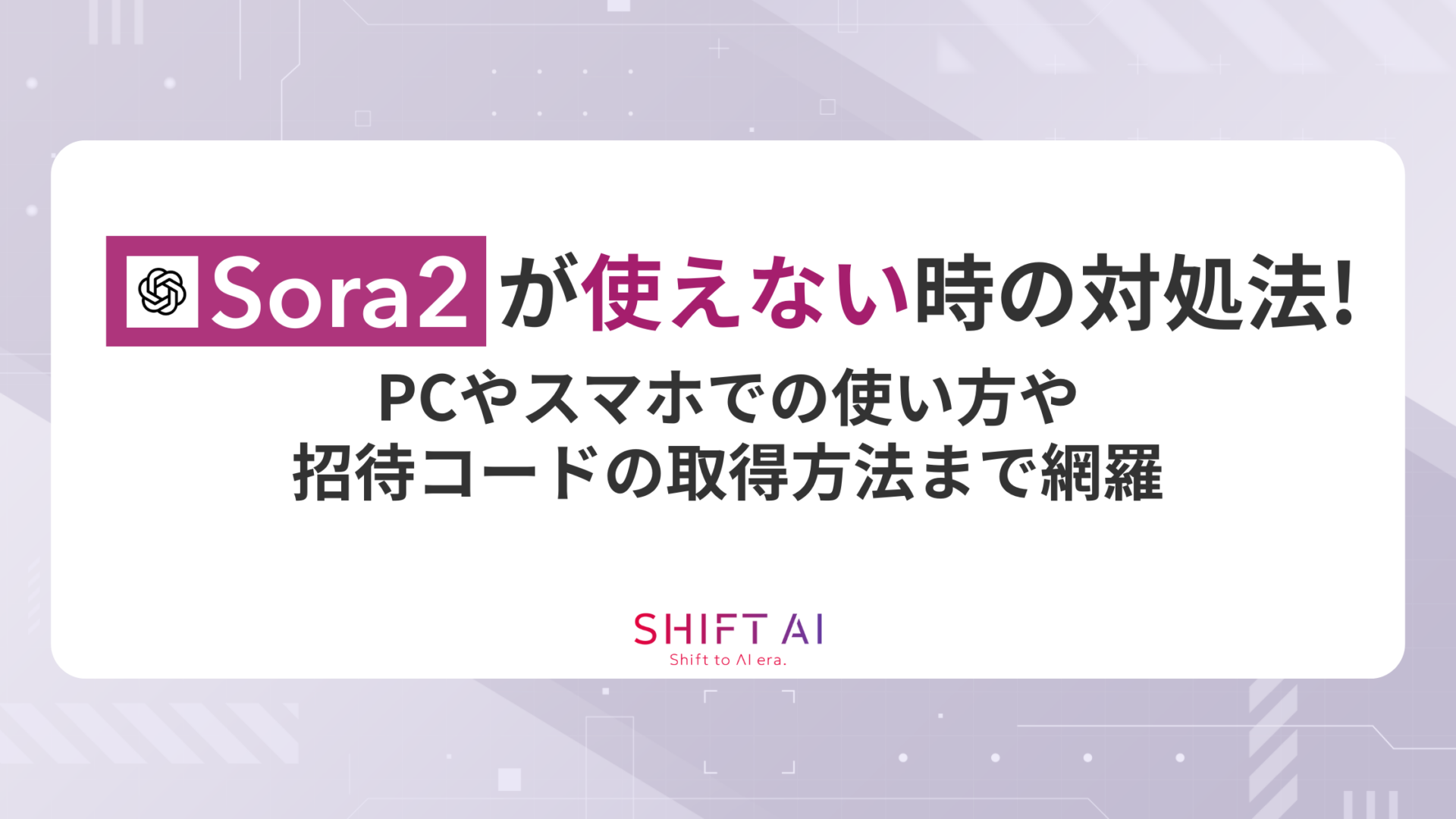 この記事では、Sora2が使えない場合の対処法を紹介しています。PCとスマホそれぞれの使い方や、招待コードに関する質問にも回答しているので、ぜひ参考にしてください。