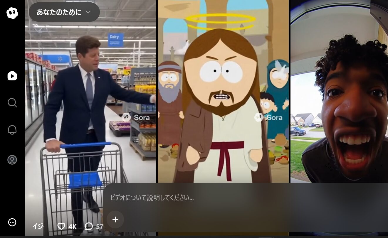 2025年10月時点でSora2は、招待制で利用者を増やしています。