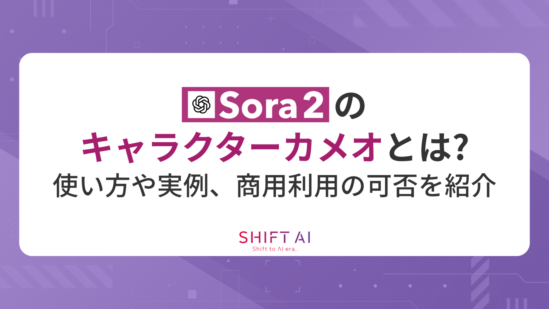 本記事では、Soraアプリのキャラクターカメオ機能の基本的な知識から使い方、実際の動画例、商用利用の注意点をまとめました。