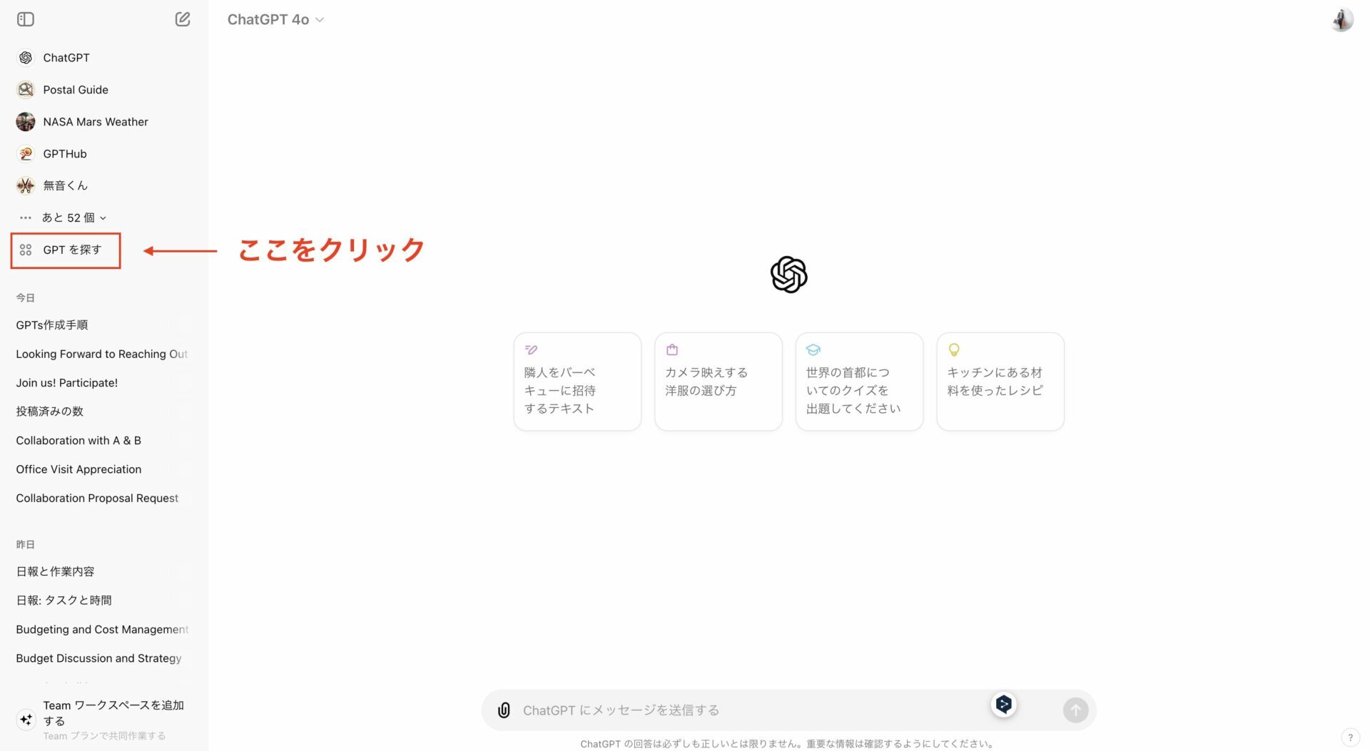 関連記事:GPT Storeとは?料金や使い方、仕事ですぐに役立つGPTsまで紹介