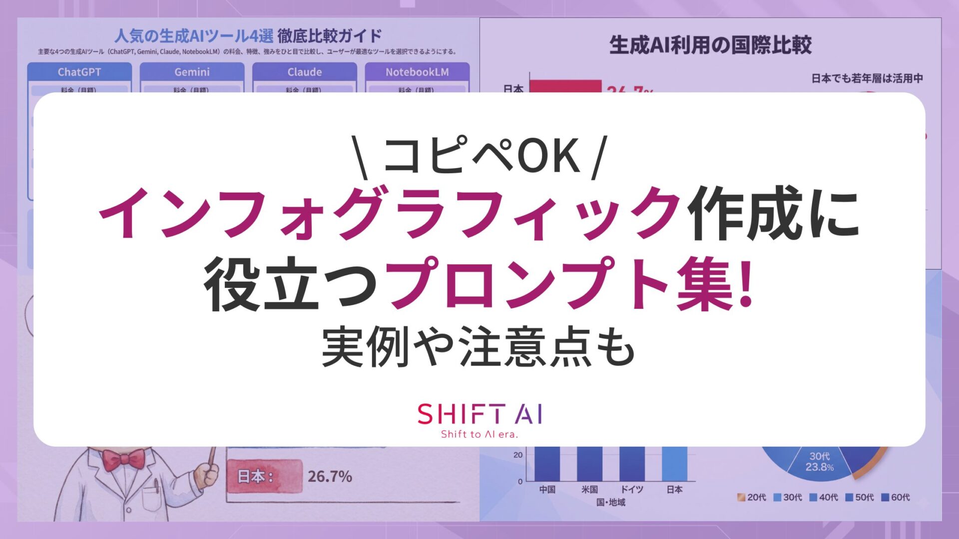 本記事では、ChatGPTやGeminiなどの生成AIでインフォグラフィックを作成するための役立つプロンプトや実例、注意点を解説します。