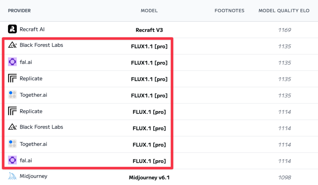 Fluxの最新モデルはFlux1.1であり、それらが上位を独占しています。