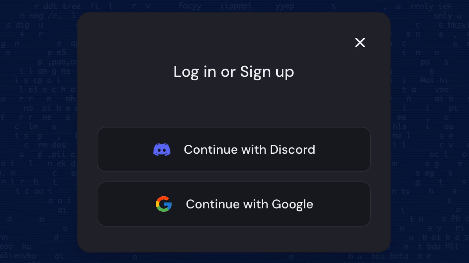 「Sign up」をクリックすると以下のポップアップが表示され、DiscordかGoogleアカウントを選べます。