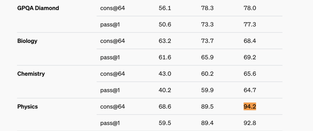 物理・生物・化学の問題で人間の博士レベルを超える精度