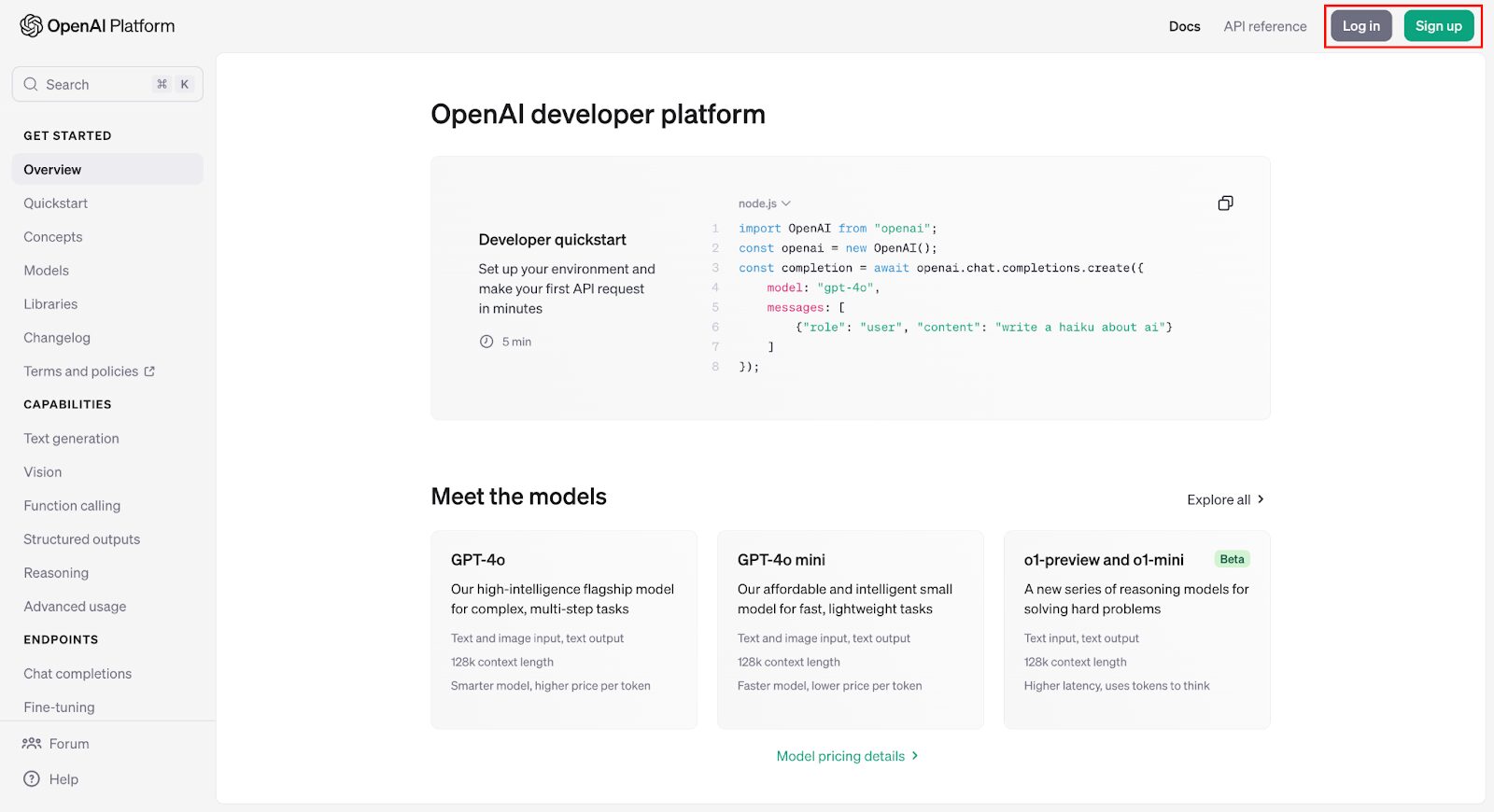 - OpenAIのダッシュボードにアクセス