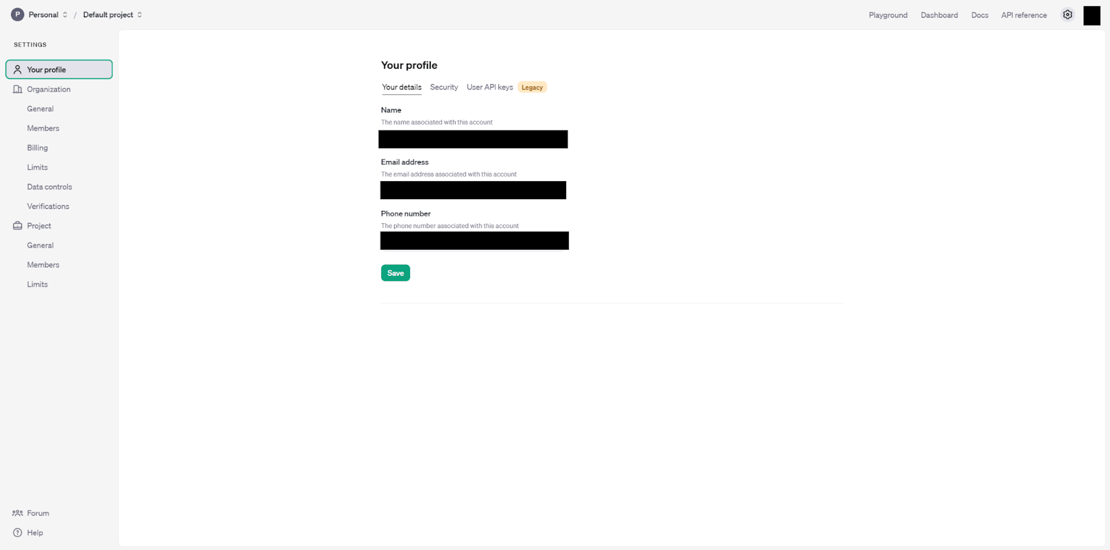 OpenAIのダッシュボードにログインし、右上のアイコンから「Your plofile」に移動します。