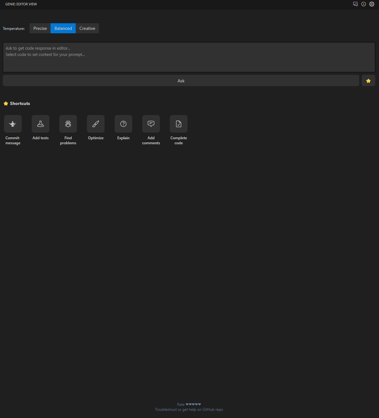 続いて、プロンプトで指定した条件でコードを生成してくれる「GENIE: EDITOR VIEW」モードです。