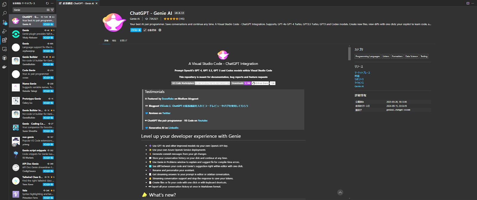 Genie AI:VSCodeで最も人気のあるChatGPT連携ツール