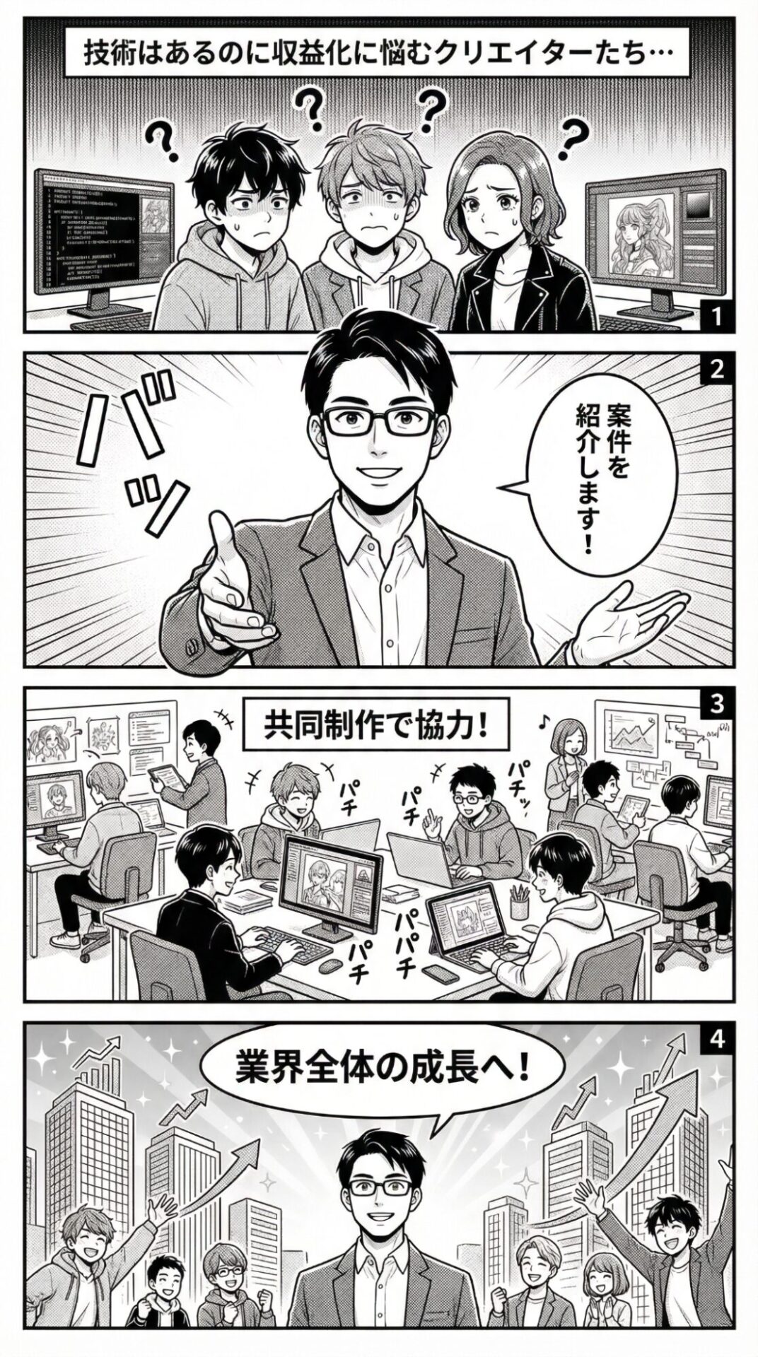 同時に、案件の相談があれば、適したクリエイターにつなぐ。