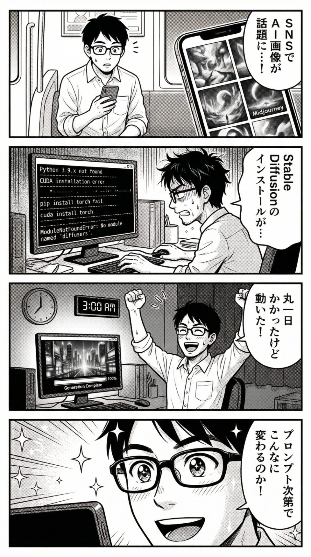 PythonやCUDA、GPUドライバーの整合性問題が次々と発生し、インストールだけで丸一日が消えることも珍しくなかった。