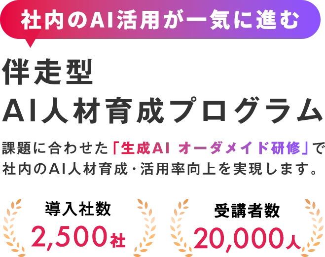 意識変革+AIリテラシー向上+業務活用をワンストップで実現します