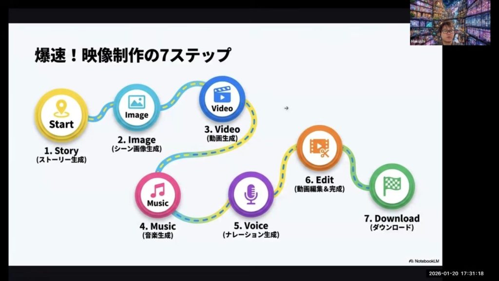 | ウェビナー名 | 1時間でプロ級!AI映像制作の裏技|SHIFT AI Junior |