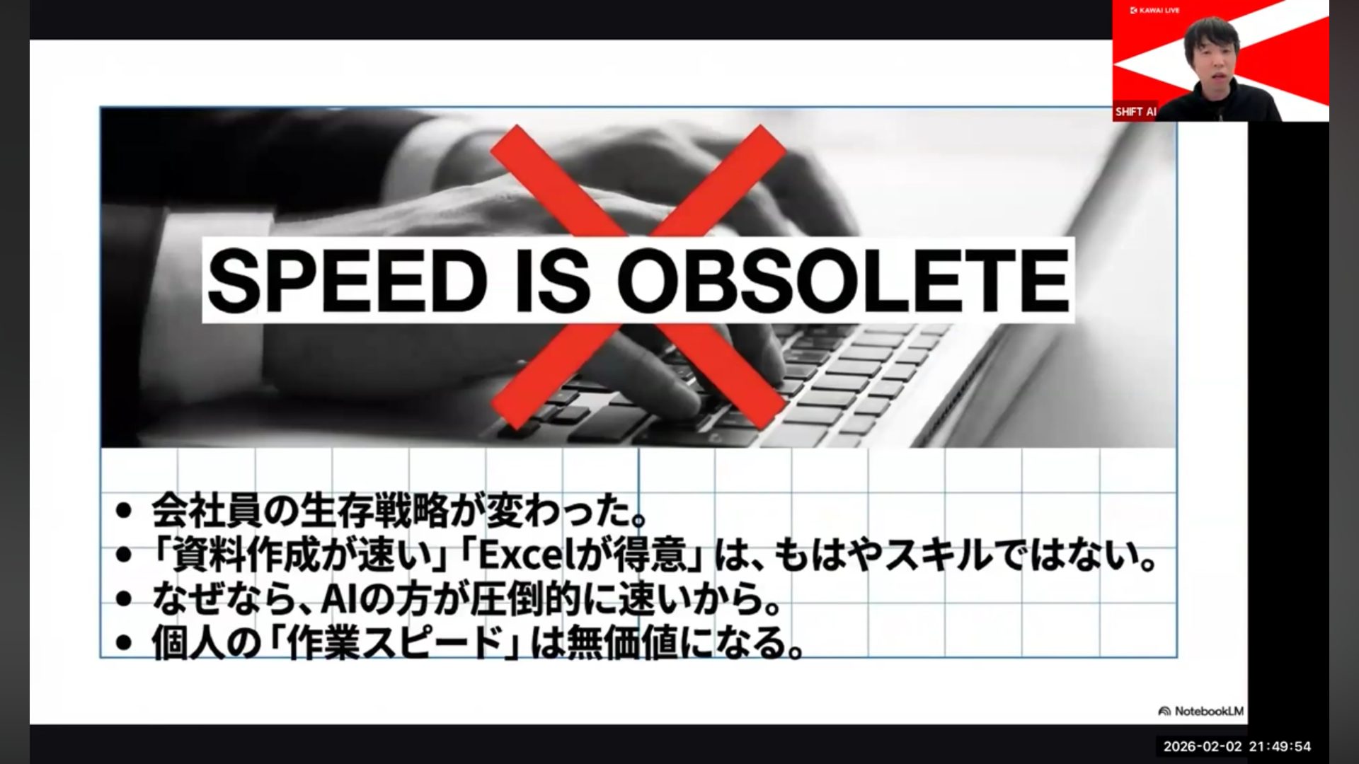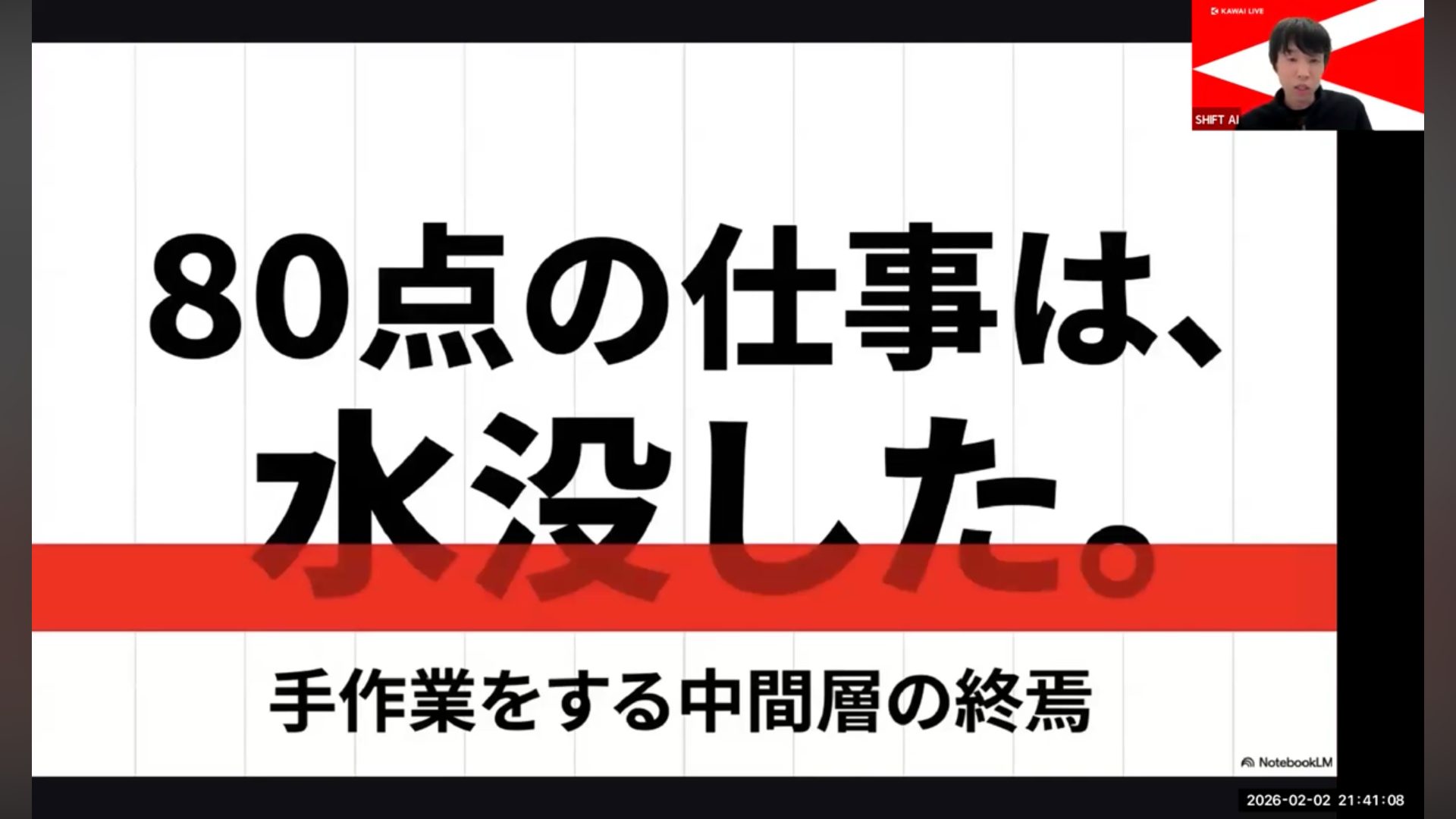 今回は、利用者数No.1*のAI活用コミュニティ「SHIFT AI」で開催された会員向けオンラインウェビナー「AI指揮者として生き残れ「一人プロダクション」化して2026年を勝ち抜く全技術」の内容の一部を特別公開します。